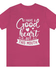 Wear your heart on your sleeve with this fun and quirky t-shirt! It's perfect for those days when you want to show your good heart, even if your loud mouth tends to get ahead of you. Rock it for an effortless way to show your true colors. I Have a Good Heart!