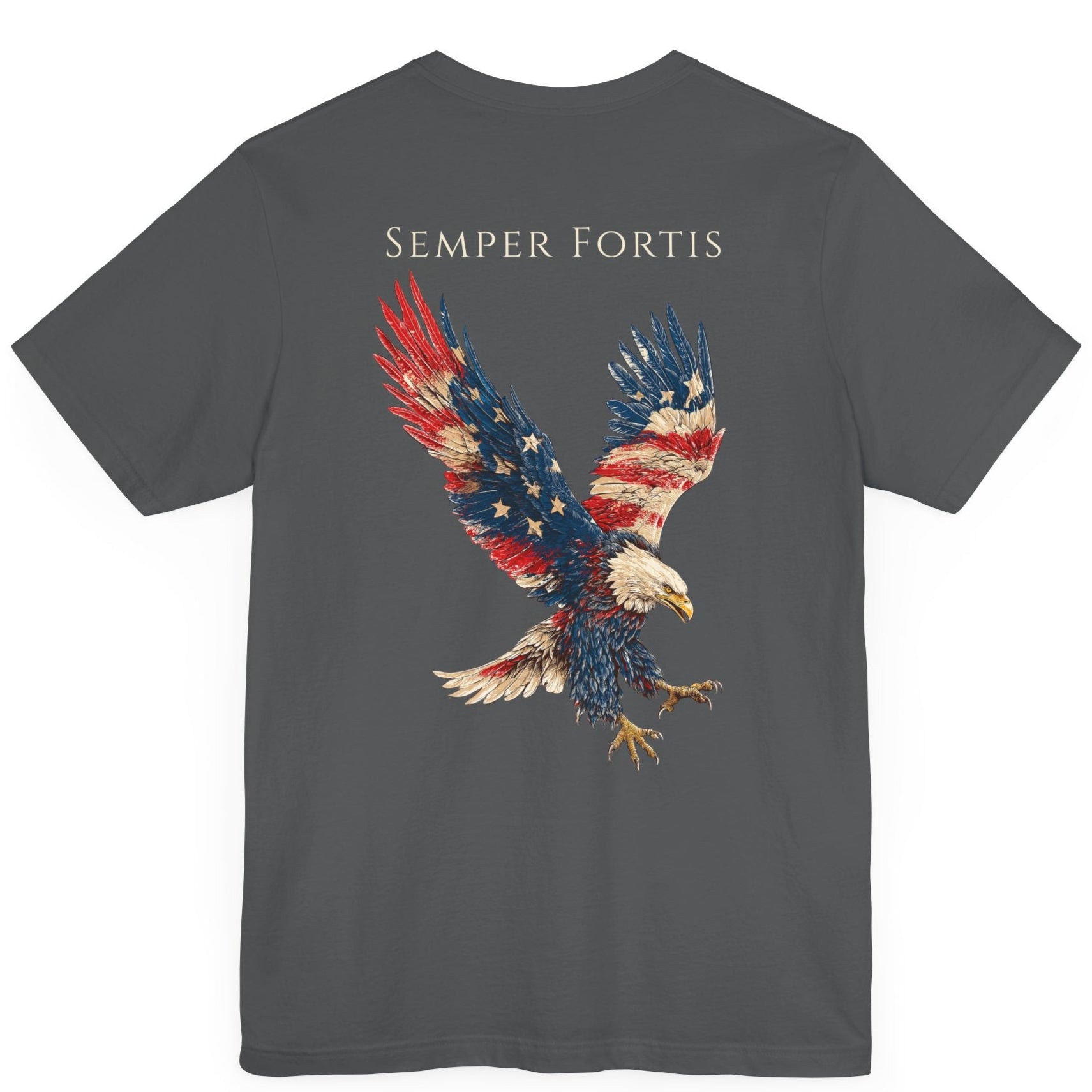 Feel the strength of freedom with the Semper Fortis (Always Strong) Patriotic Shirt from AmericanTees.US! A fierce eagle with American flag feathers embodies bold USA pride, crowned with “Semper Fortis”. This patriotic shirt, in red, white, and blue hues, celebrates resilience and honor. Perfect for showcasing your love for the greatest nation—wear this design and soar with American spirit!